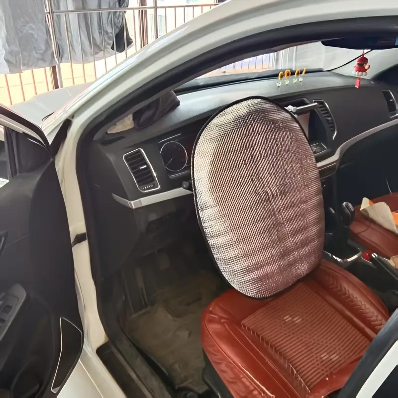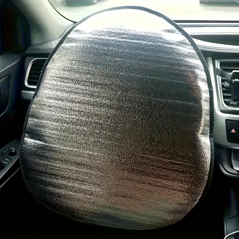 Stay cool and protected with this Universal Steering Wheel Sun Shade Cover, designed to reflect harsh sunlight and block extreme heat buildup. Crafted with a reflective aluminum foil bubble layer and breathable mesh, it shields your wheel from cracking, fading, and getting scorching hot.